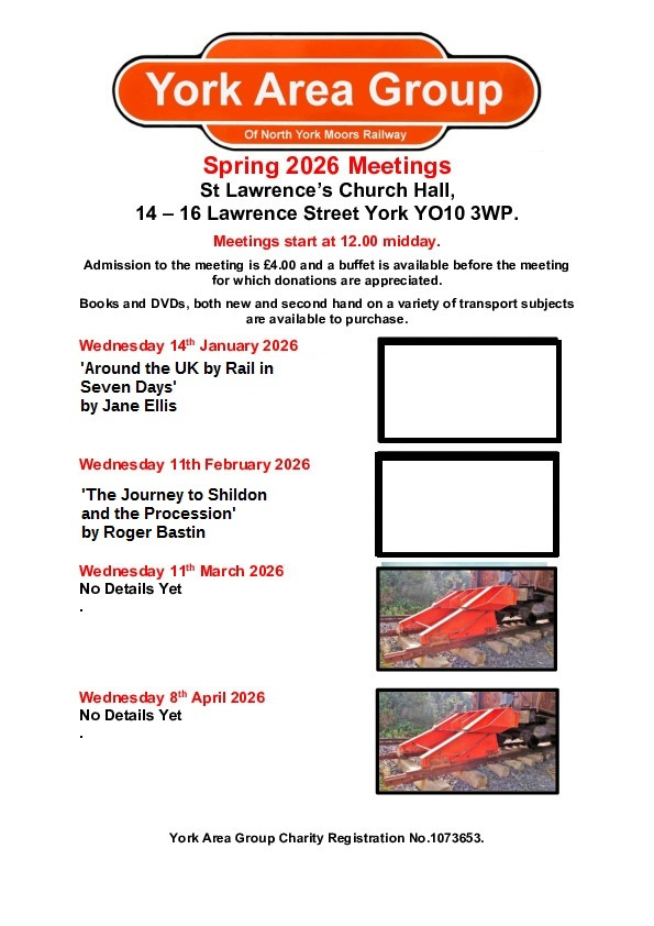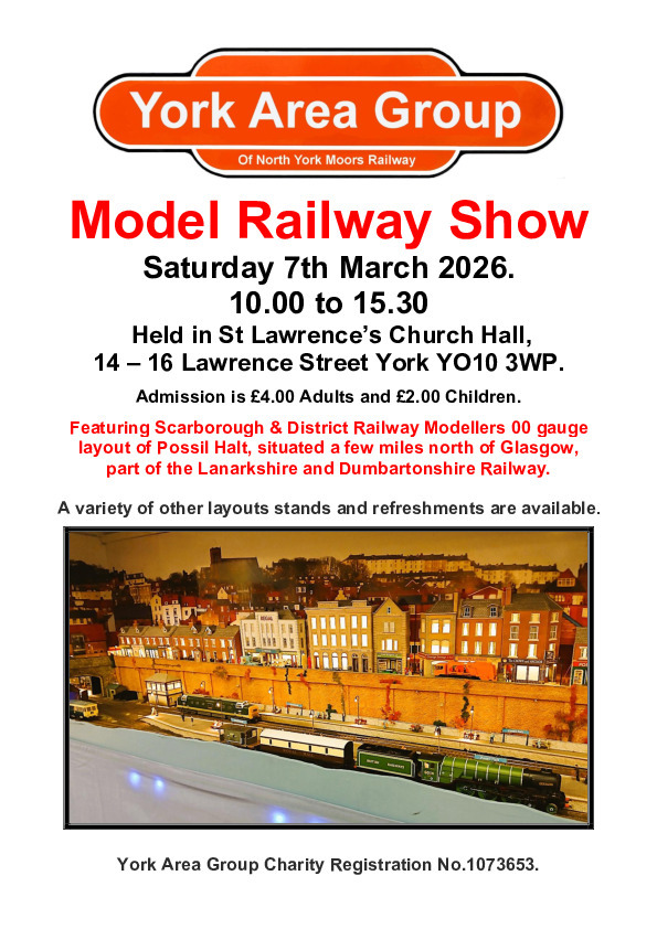 York Area Group mainly comprises NYMR members who live in the York area but not exclusively. It is run by its trustees who are unpaid volunteers and it has no employees.